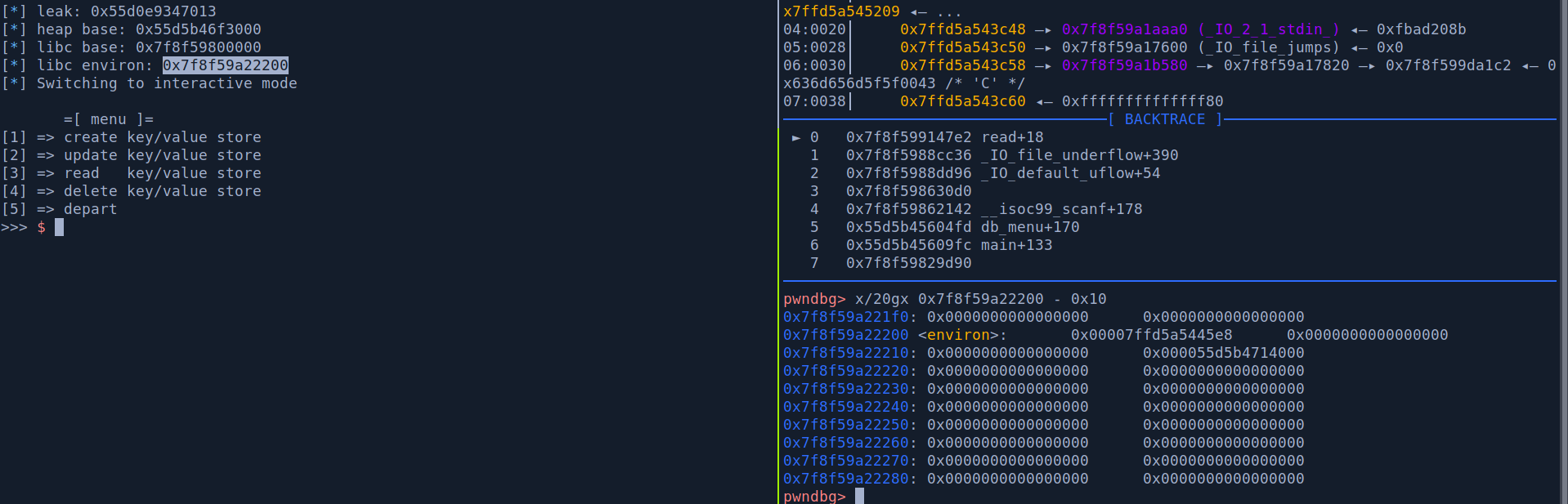 leak = int(io.recvuntil(b' ', drop=True), 16)