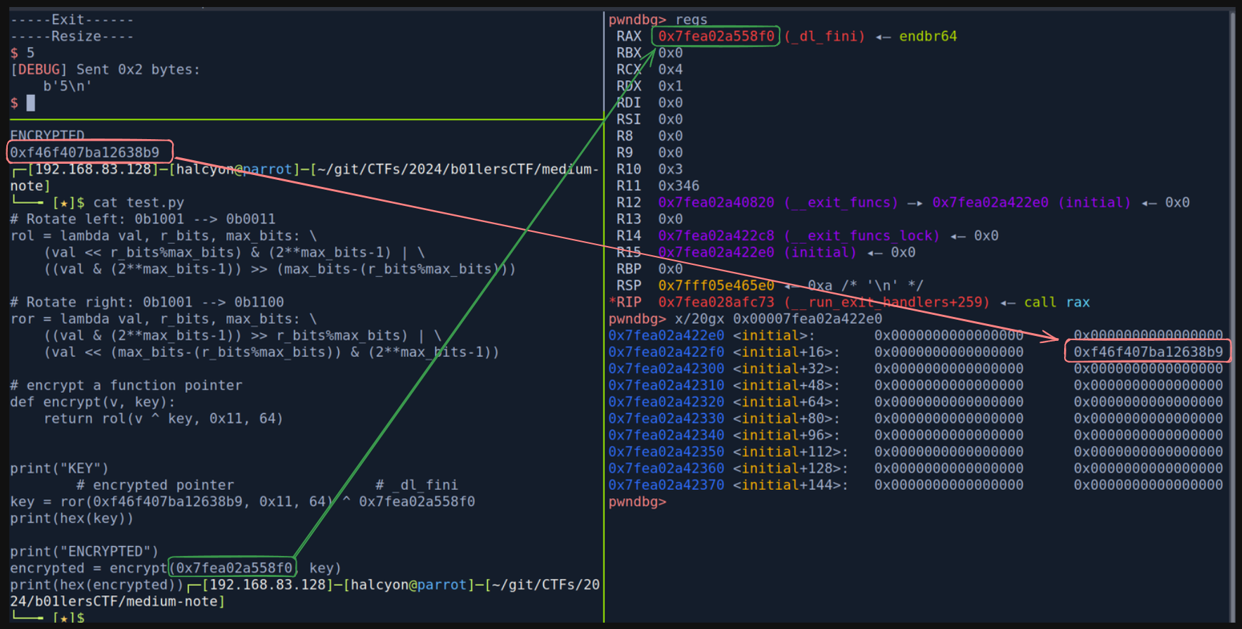 leak = int(io.recvline().strip(), 16)