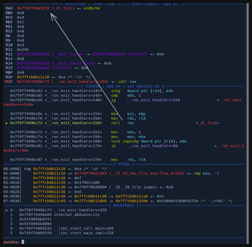 chal: ELF 64-bit LSB executable, x86-64, version 1 (SYSV), dynamically linked, interpreter /lib64/ld-linux-x86-64.so.2, BuildID[sha1]=965b8ed1abf621f44bb3c06b75e6b7b55e519de0, for GNU/Linux 3.2.0, not stripped