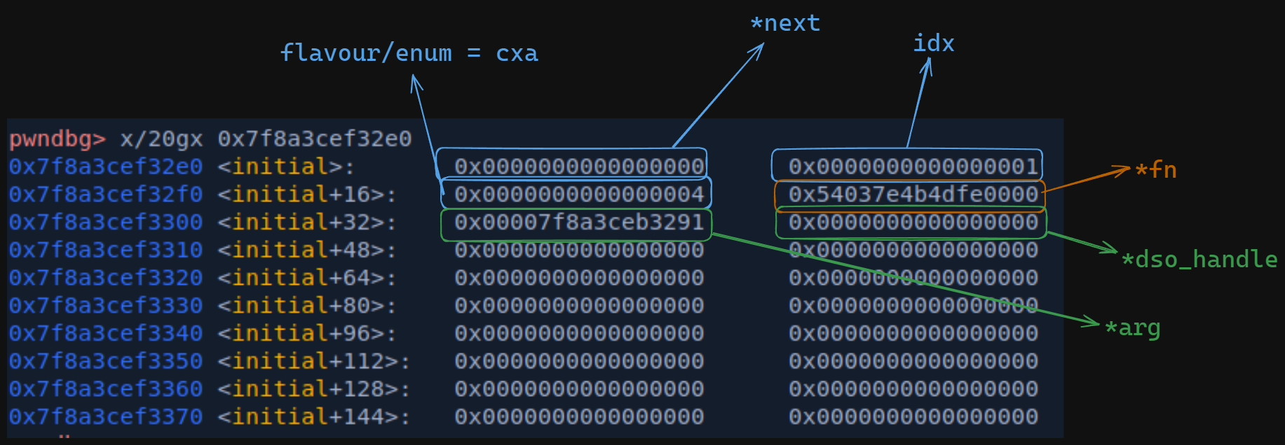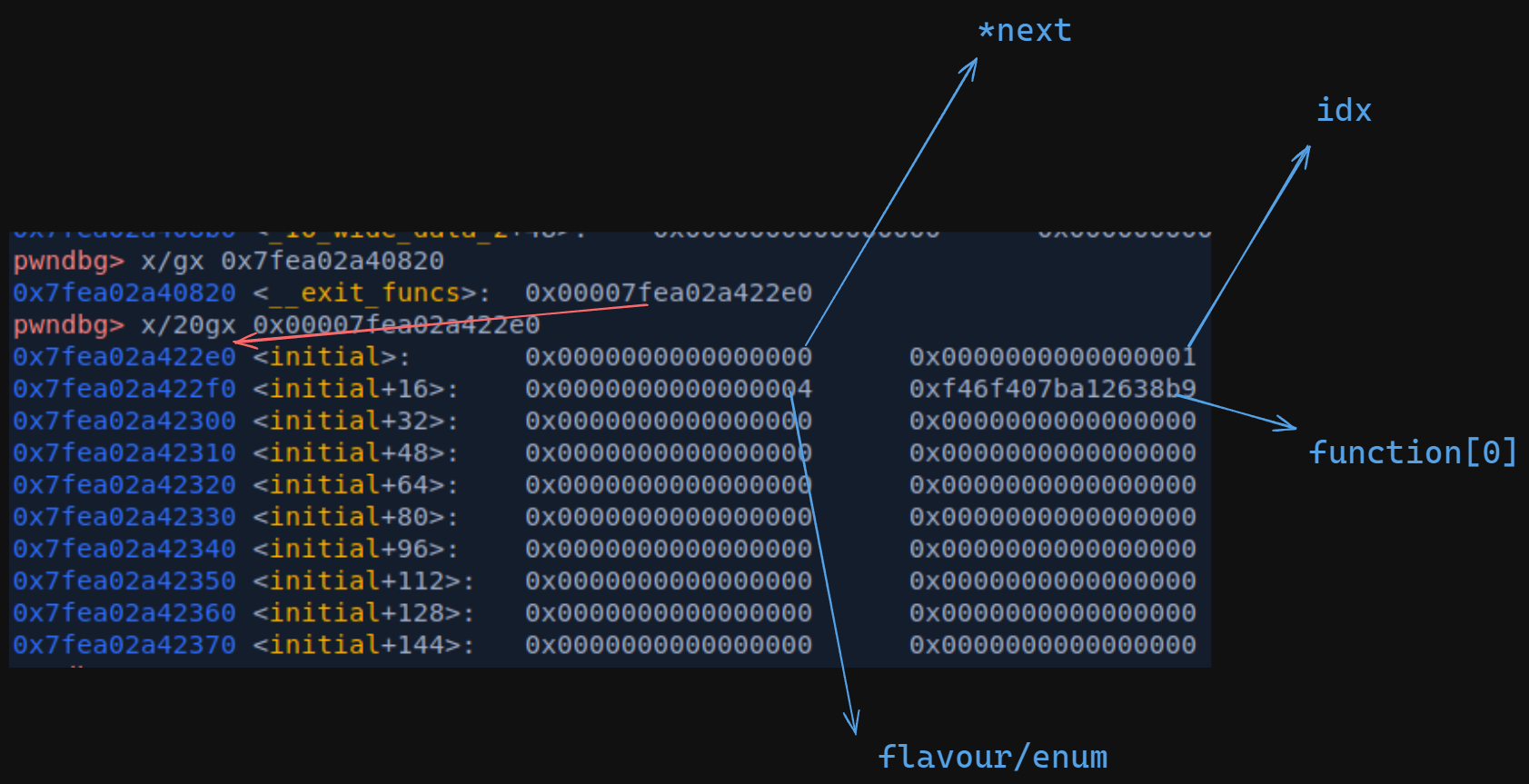 we can see that our De Brujin has populated x30 and x0, let's find its offset.