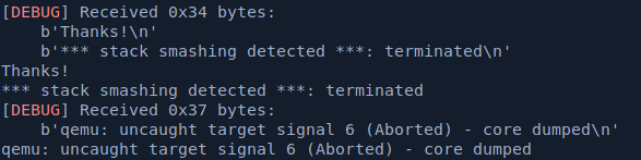 the first thing I did is to fuzz for info leaks, primarily to get the offset to canary as we need it in order to successfully execute our buffer overflow.