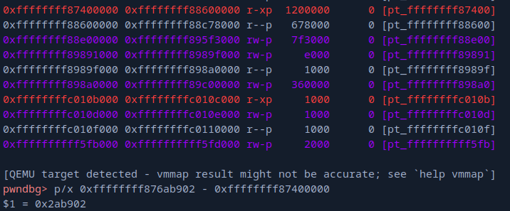 I took the address with the higher address i.e. ffffffff00000000 and try to find it's offset from the kernel base.