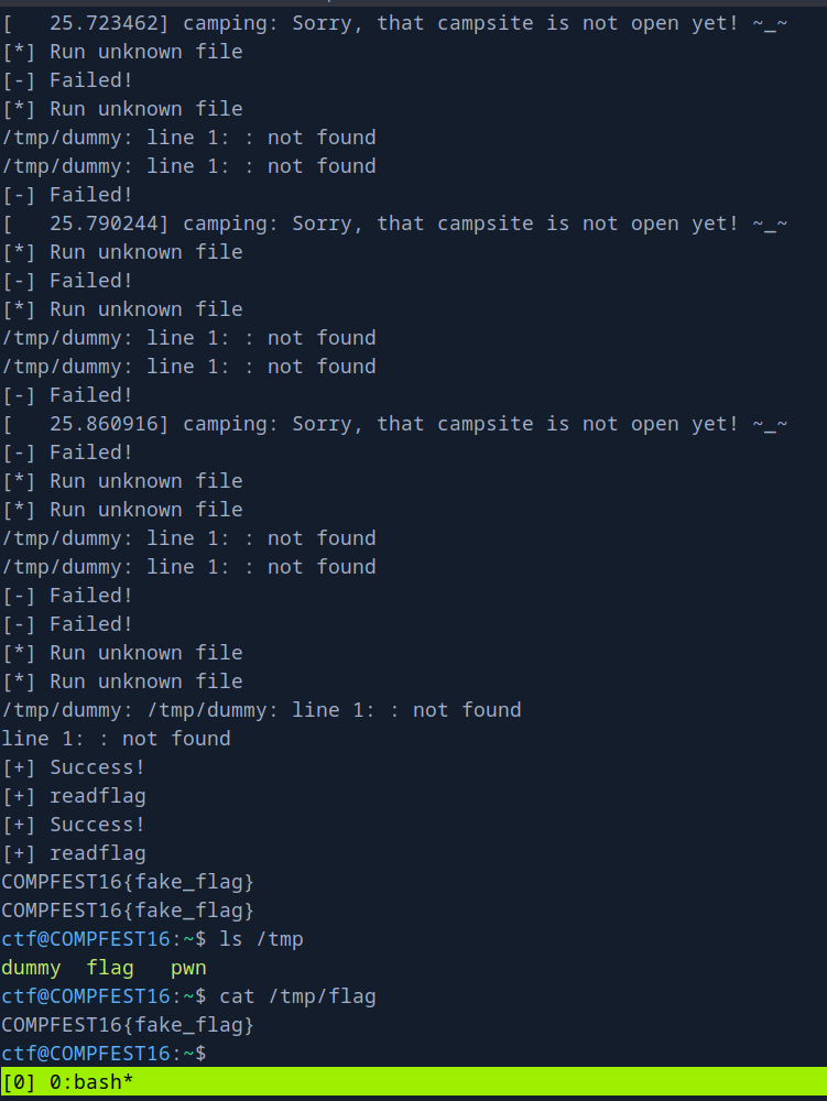 printk(KERN_INFO "camping: Done! Your campsite is now beautifully decorated :)\n");
