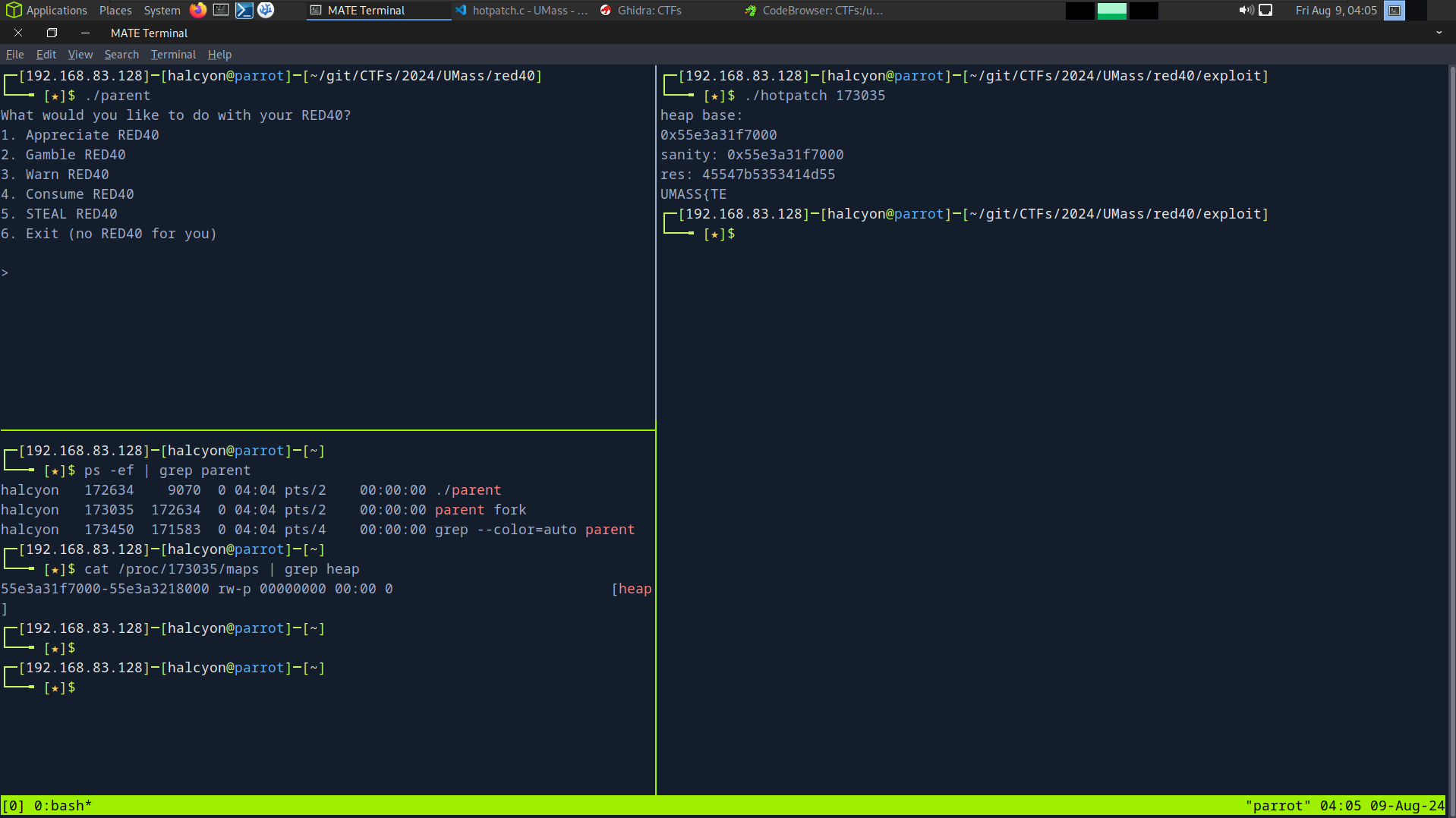 [*] '/home/halcyon/git/CTFs/2024/UMass/red40/parent'