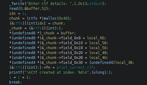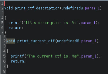 Based upon its name (print_current_ctf and print_ctf_description) the functions that is assigned when the chunk is created is presumably used to print the chunk's content.