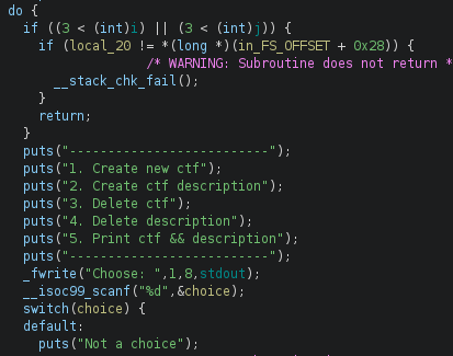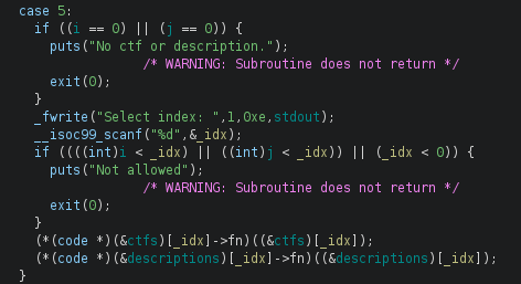 Now we just need to overwrite the function pointer with win() and call option 5. Once it dereference the ctfs[0], it will call win() instead of print.