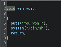 and so the goal is clear, the intended solution is to overwrite the function pointer with win() such that when we call option 5, it will spawn a shell instead.