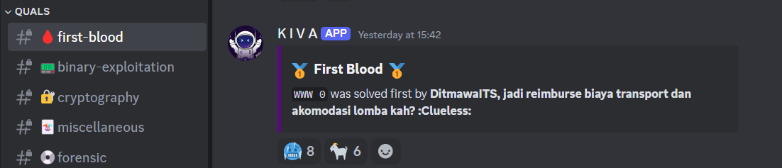 | WWW 0 | Binary Exploitation | 996 pts | 3 |