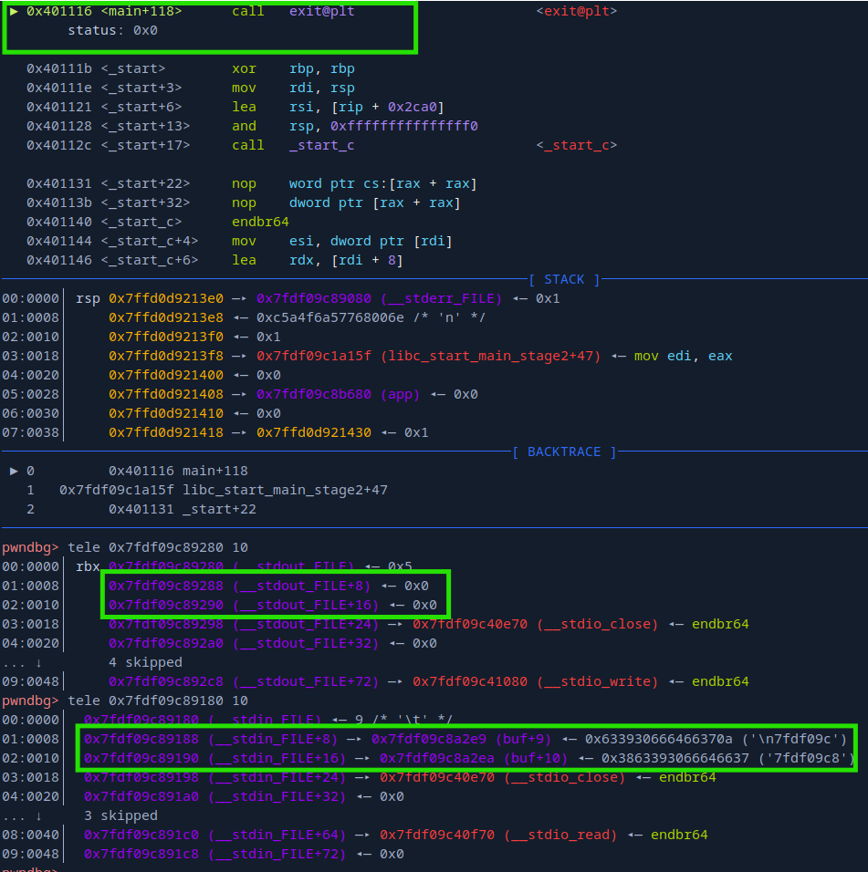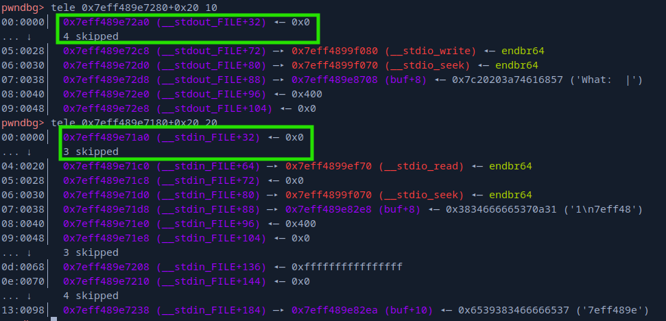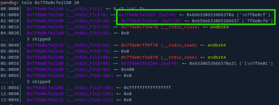 as for our fake file, it will be located within the stdin's buffer and is pointed by rpos and rend.